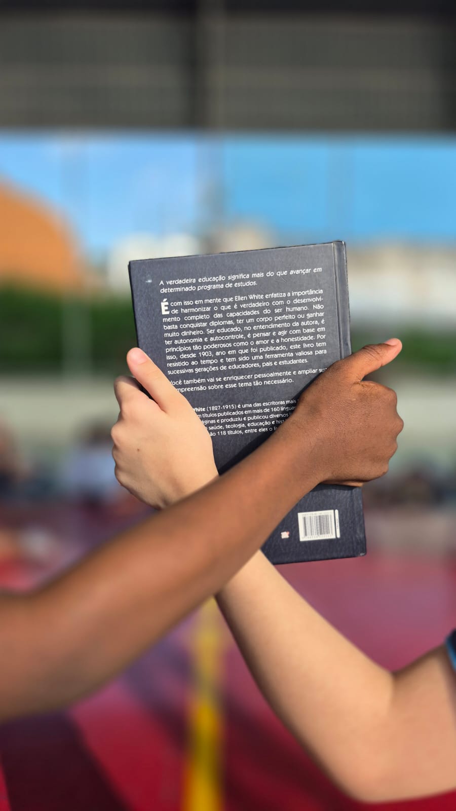 Esses fatos reais e tristes citados acima sobre a segregação educacional, somados à esperança de dias melhores contendo vastas possibilidades de estudos, me levaram a fotografar dois alunos meus (Lívia e Enzo) de origens raciais diferentes e situações financeiras muito distintas, unidos com braços entrelaçados como um sinal de protesto contra a sociedade que violenta nossas crianças podando-as de aprender com qualidades iguais, e modelando a sociedade sua maneira. O livro nas mãos de ambos serve para lembrar que todos devem ter as mesmas possibilidades de acesso a boas instituições educacionais sem discriminação.